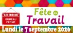 Fête du Travail - Bureau municipal...Lundi 7 Septembre 2026 |